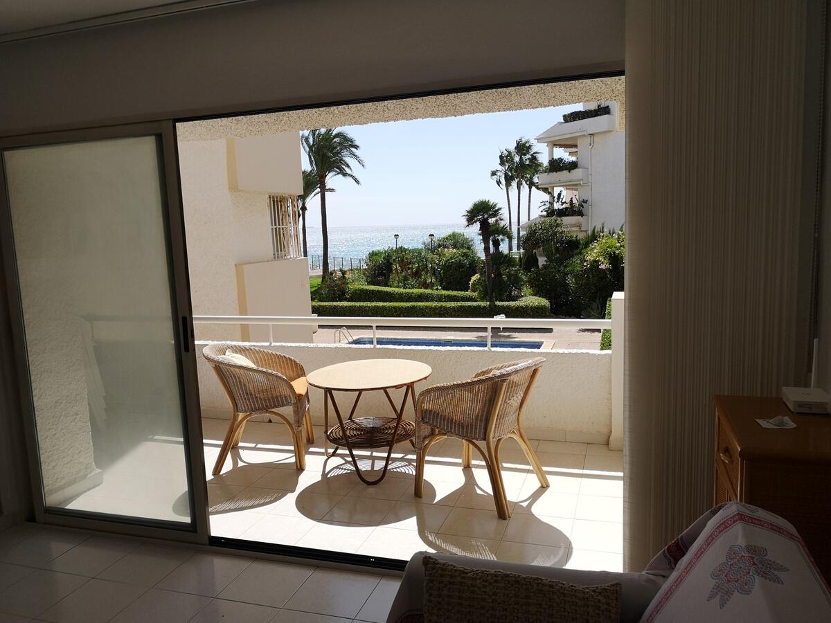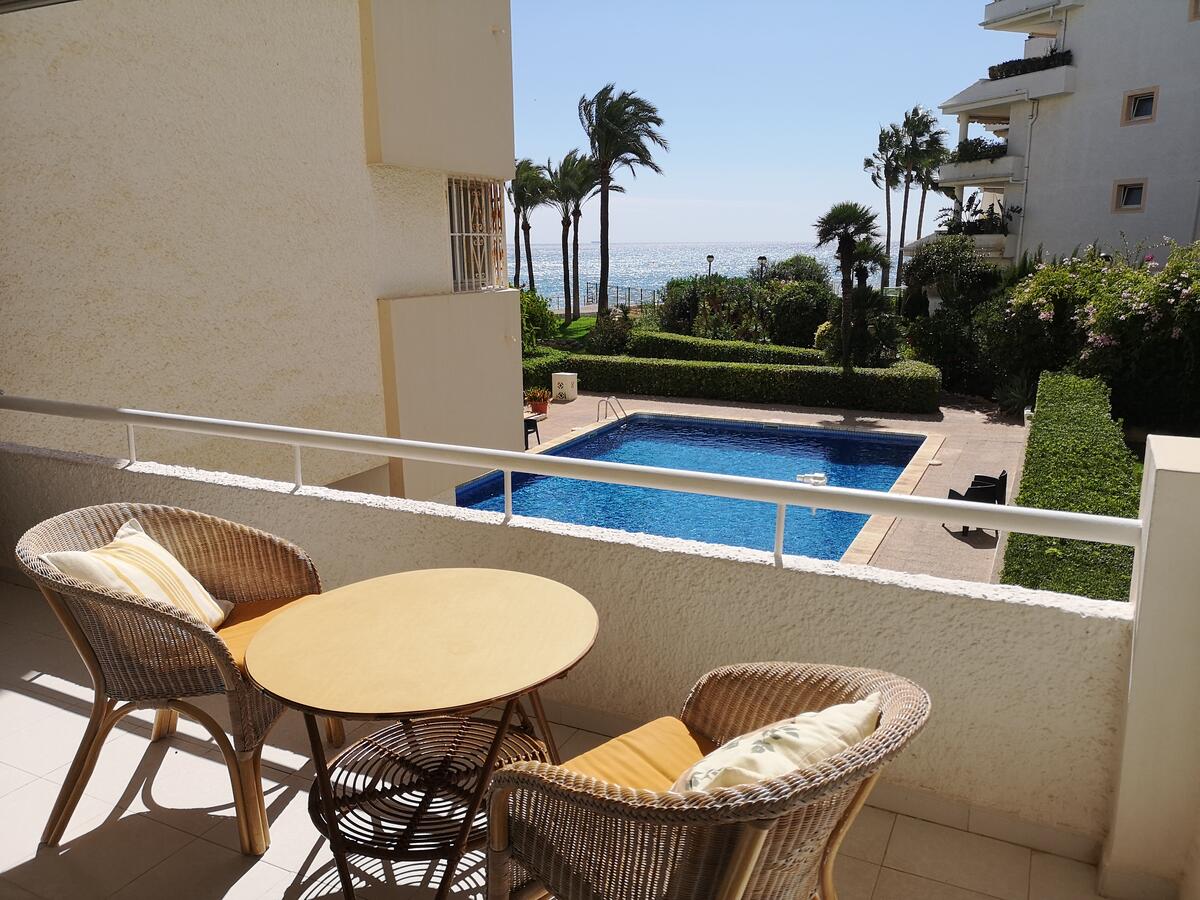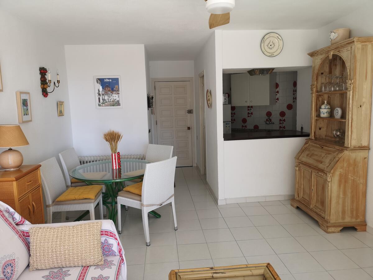 Bel appartement en première ligne de plage. Il a 1 chambre avec 2 lits et sortie sur la terrasse. Une salle de bain. Cuisine ouverte sur le spacieux salon-salle à manger et grande terrasse avec vue sur la piscine. Chauffage central avec radiateurs. Bâtiment situé en première ligne de plage à Altea, zone Cap Negret, avec piscine ouverte en été et fermée en hiver, avec jardins et zones de cesped, sortie directe sur la plage.
